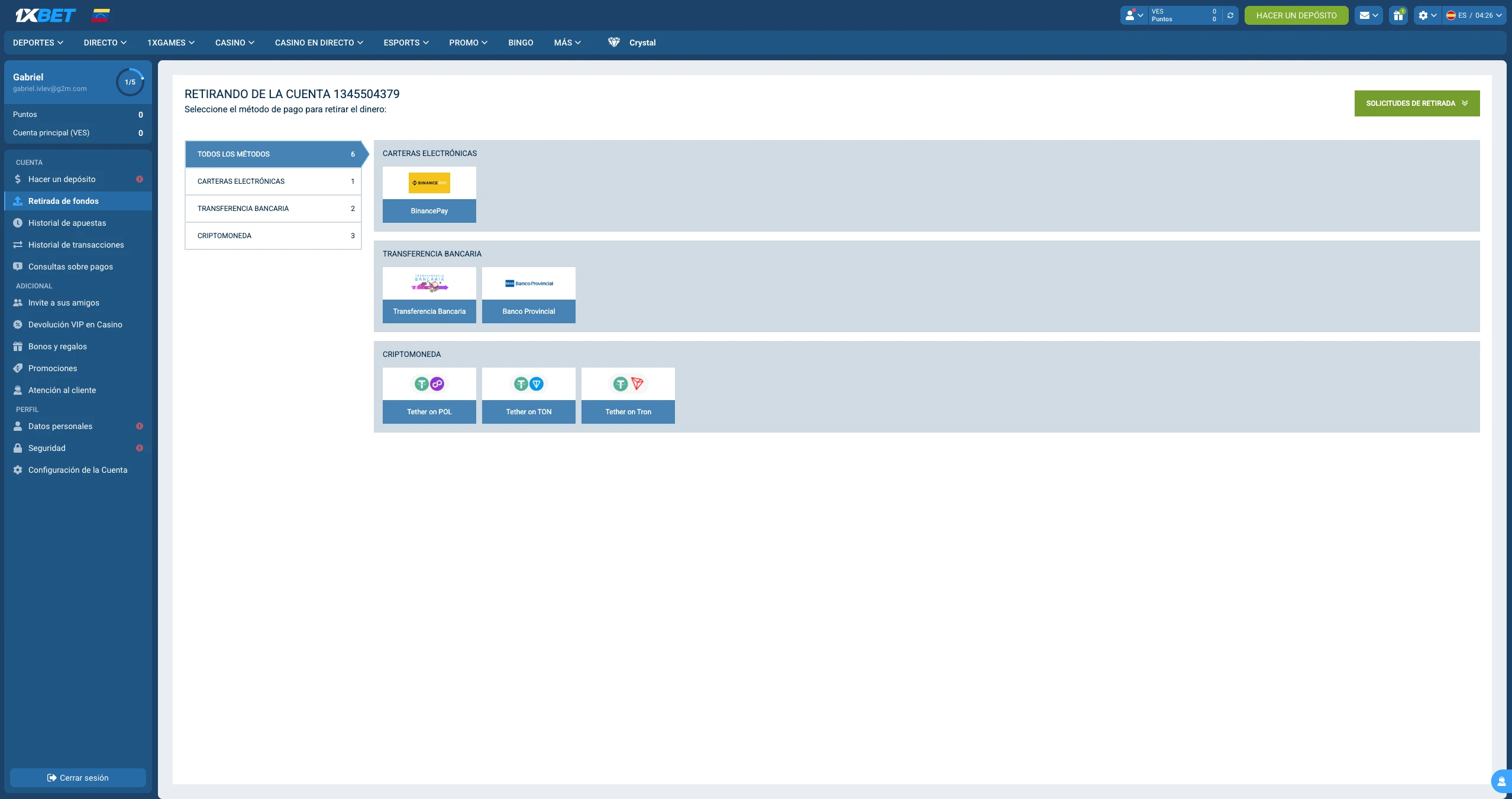 Después de un par de apuestas ganadoras, quise retirar mis ganancias de 1xBet. Fui a la sección “Retirada de fondos” y vi que podía usar: