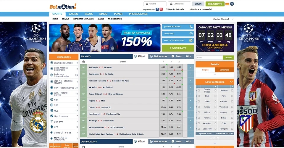 Betmotion es una respetable casa de apuestas deportivas con muy buena reputación entre los jugadores online. Pertenece a Vision Media Services y cuenta con la licencia expedida por el gobierno de Curaçao. Esta casa de apuestas ofrece una variedad considerable de deportes en los que apostar y recompensa a sus jugadores con fantásticos bonos y promociones. Su página web se encuentra disponible en español, inglés y portugués. ¡Pruébala ahora apostando a tu deporte favorito!