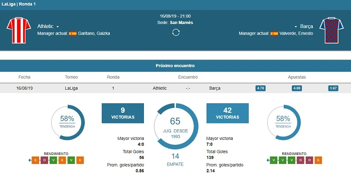 En cada selección se puede desplegar una ventana con las estadísticas de ambos equipos/jugadores para analizar el contexto y la situación de forma antes del inicio del match. También se aporta información de todos los canales de TV con derechos de emisión del torneo en cuestión.