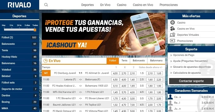 Los apostantes podrán disfrutar de un sinfín de mercados deportivos en la modalidad pre-partido y con las apuestas en directo. Sin embargo, si prefieres otros juegos de azar no tienes de qué preocuparte porque esta marca también dispone de una sección llamada Rivalo Casino. En ella encontrarás tragaperras, mesas de ruleta o de blackjack y hasta juegos de bingo. Lo que sí echamos de menos es una sección dedicada al poker.