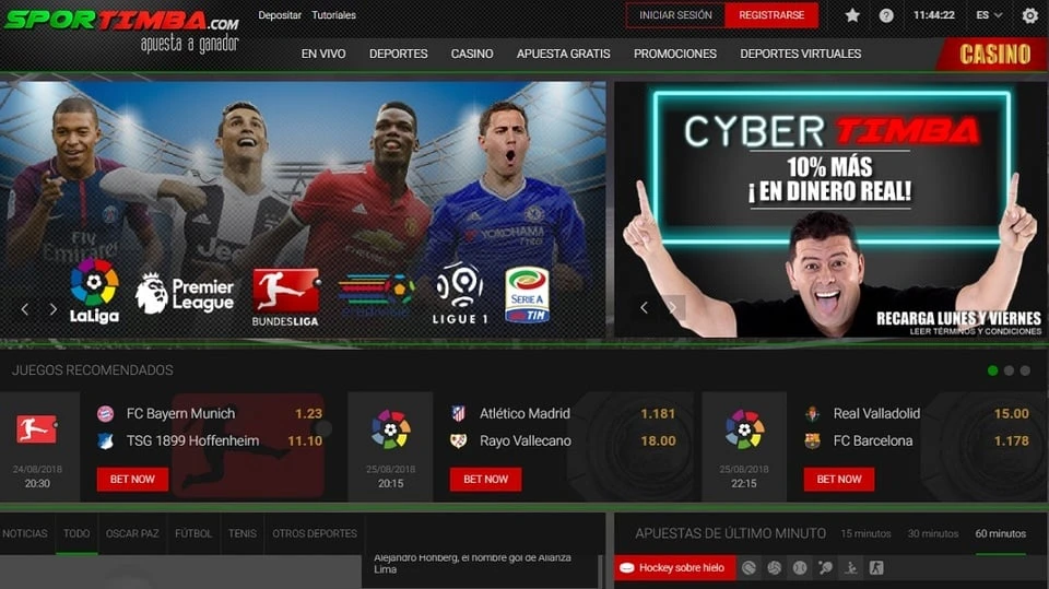 Sportimba es una casa de apuestas especialmente dirigida a un público peruano. Esta marca está licenciada por las autoridades de Curaçao y, además de ofrecer servicios de apuestas deportivas, también cuenta con productos de casino. Es un portal seguro y de calidad en el que se puede apostar en múltiples deportes y mercados, ¡Incluso podrás realizar tus pronósticos en varios eSports! La casa Sportimba permite apuestas prepartido y en directo. Además, cuenta con una app para Android que se puede descargar desde su página web. Es un portal bastante completo y recomendable para los usuarios que residan en Perú.