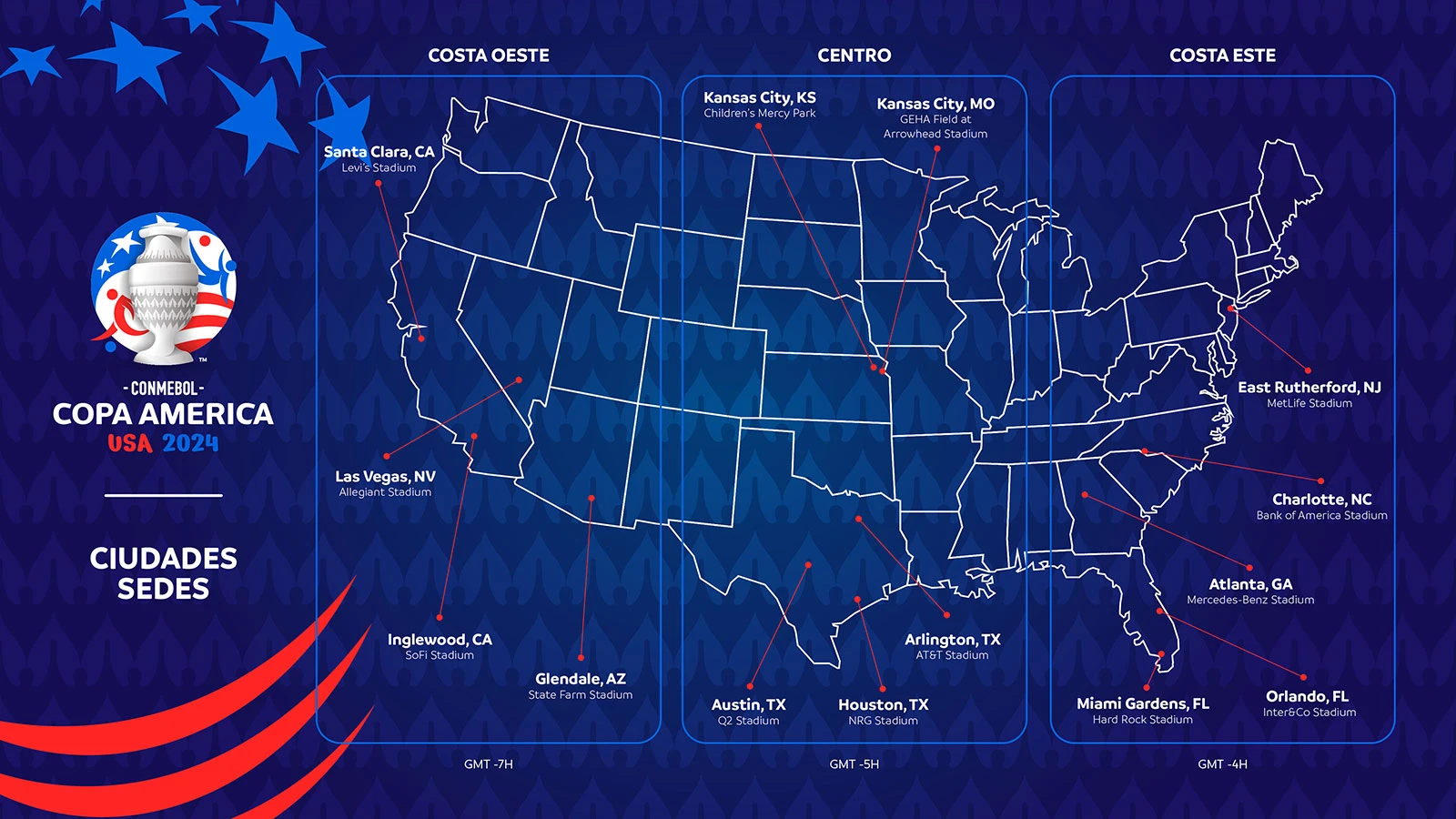 La Copa América 2025 se juega en Estados Unidos y estos son los diferentes estadios que van a acoger la competición en las fechas más relevantes: