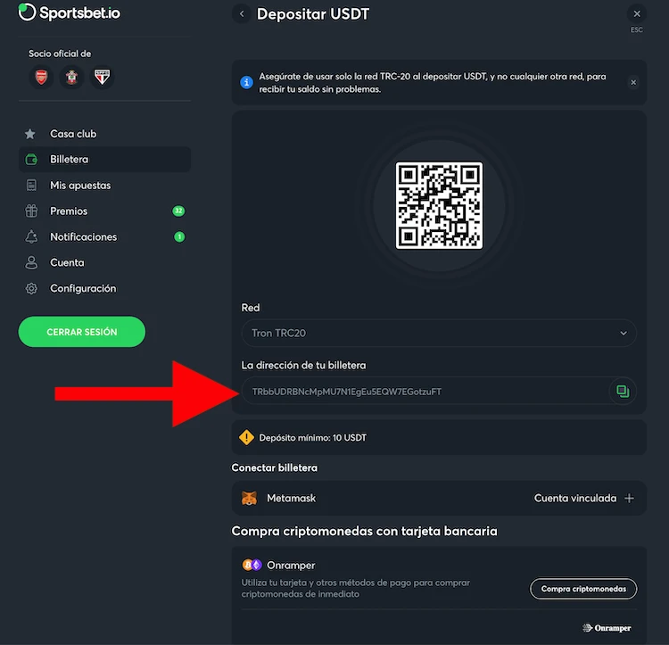 Aunque la interface para depositar cryptos en una casa de apuestas podría variar un poco dependiendo el exchange o el operador que utilicemos, el proceso será similar en casi todos los casos. Ten muy en cuenta lo que hemos comentado con anterioridad sobre las redes de transferencia y la diferencia entre divisas.