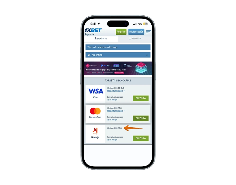 Si te hablamos desde nuestra experiencia apostando, te afirmamos que 1XBET es una de las casas de apuestas más conocida dentro del mercado actual argentino y te garantizamos que no muchos operadores brindan tantos métodos de pagos. Las apuestas en pesos argentinos con las tarjetas de Naranja X son un método recomendado de este año para depósitos en el país.