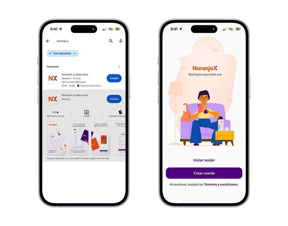 1️⃣ Descargué la app móvil de Naranja X desde la tienda de aplicaciones del celular. En concreto, lo hice para mi Android.