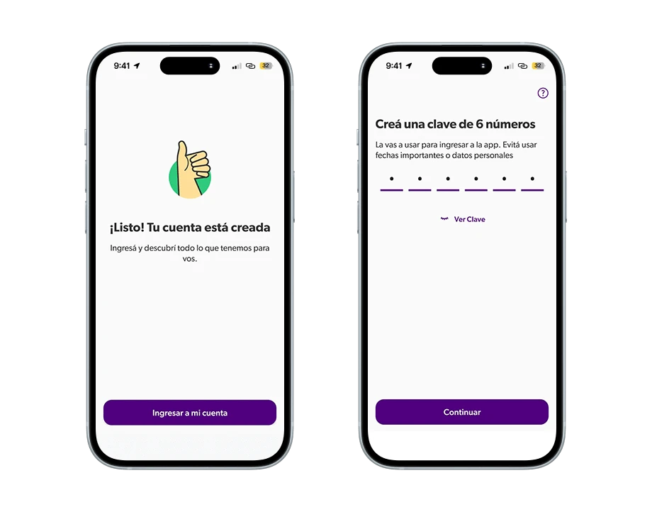 Una vez que completé todos los pasos, mi cuenta Naranja X ya se había creado exitosamente y recibí la confirmación. También tuve que añadir mi clave, ¡no uses datos personales en este paso!